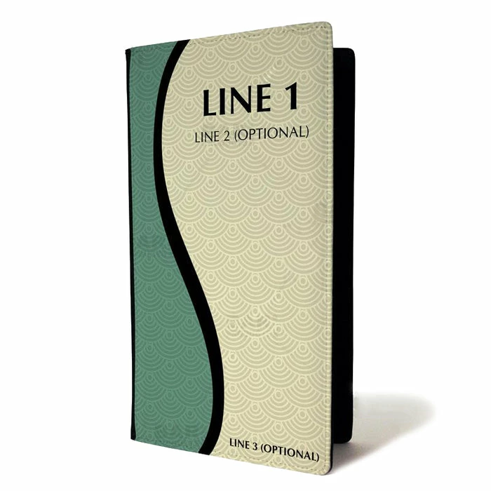 These check holders are constructed from a high quality leather and polyester material combo on the outside, with a soft velvet lining on the interior. The face of the folder showcases a full color retro inspired design perfect for any type of service. The inside features 2 slots to hold checks, cash and receipts securely while the plastic slot is perfect for holding credit cards. Measures: 5.75″ x 10″.