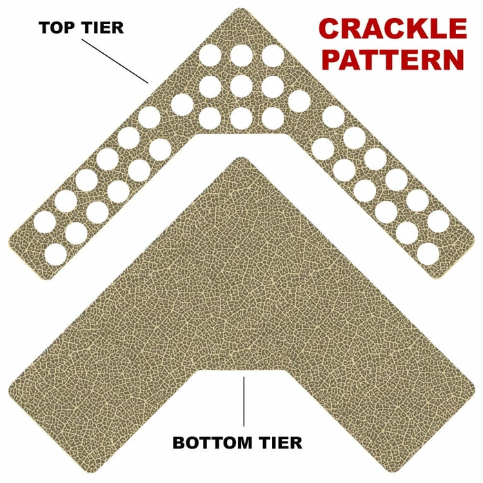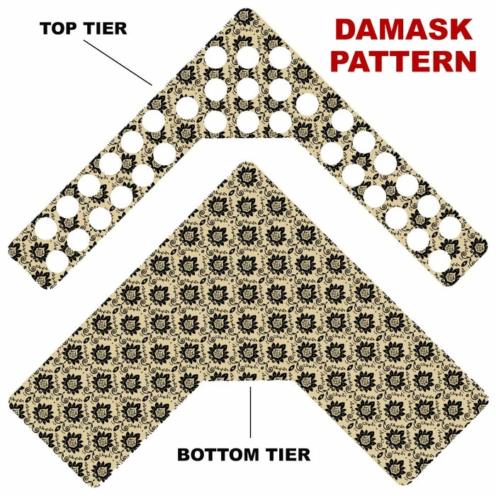 Here is a simple way to choose your Counter Caddy design from several pattern templates. Have the ability to match up your kitchen theme simply by choosing from our wide selection! You also have the ability to choose the height of your unit. The Dowel Rods are available in 3.5″, 5,75″ and 7.5″ heights elevating your second tier to preferred under cabinet heights. This particular Counter Caddy features (35) K-Cup hole slots on the top tier measuring 1.5″ in diameter. These holes are perfect for storing and displaying your favorite K-Cup flavors!