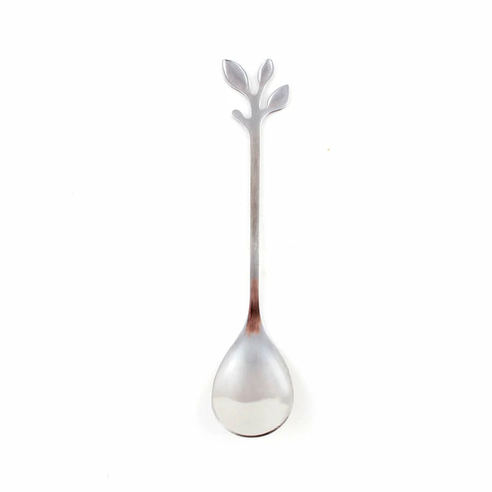 Our Demi Leaf Spoon is made of durable stainless steel and features an elegant leaf shaped design along the short stem of the spoon. It is smaller than a teaspoon measuring only 4.75″ inches in length. Though this type of spoon is traditionally served with coffee beverages as a stirrer, its particularly small size makes it a wonderful tool for other barista tasks like spooning cappuccino froth or adding sugar to tea. The Demiย Leaf Spoon is the perfect tool for professional or at home use!ย
