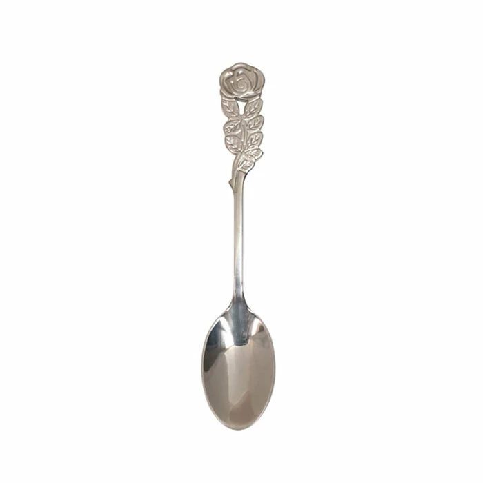 Our Demi Rose Spoon is made of durable stainless steel and features an elegantly sophisticated rose motif along the short stem of the spoon. It is smaller than a teaspoon measuring only 5 inches in length and is traditionally referred to as a demitasse spoon. Though this type of spoon is traditionally served with coffee beverages as a stirrer, its particularly small size makes it a wonderful tool for other barista tasks like spooning cappuccino froth or adding sugar to tea. The Demi Rose Spoon is the perfect tool for professional or at home use!
