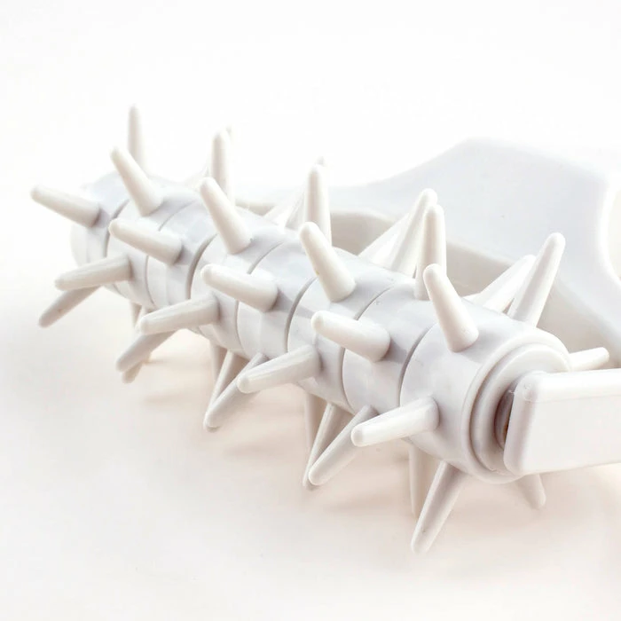 This Pizza Dough Docker is the ideal helper for making pizza at home. Whether you’re using ready-made pizza dough or using a homemade pizza crust recipe, the secret to a consistent crust is to eliminate air bubbles while the dough rises. Docking dough pierces the surface and pinches the top and bottom sides together.Β Mrs. Anderson’s Dough Docker is sturdy, durable, and heat safe. It is dishwasher safe and can be stored easily.Β This docker is 8″ long and 5″ wide.