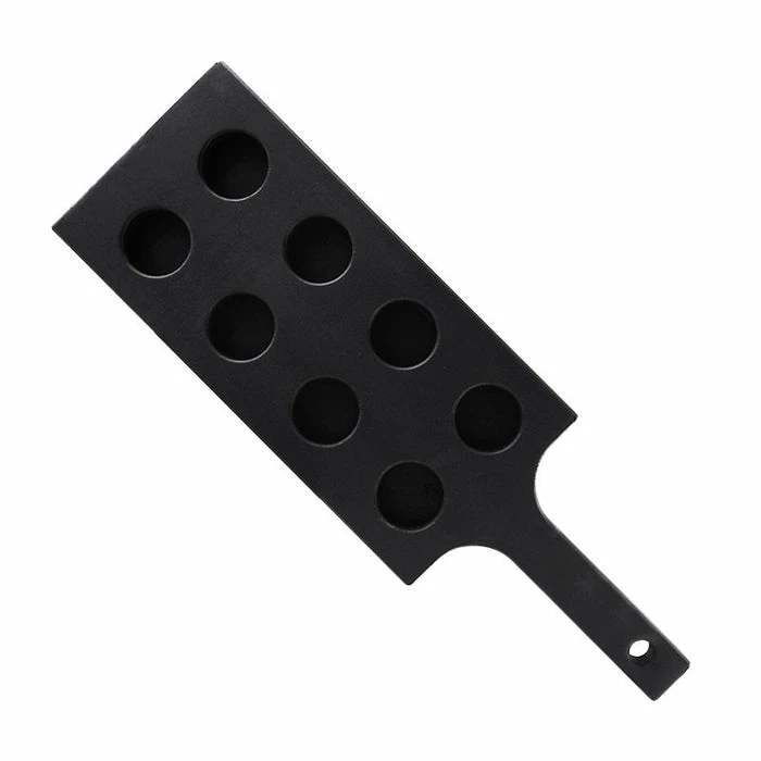 This unique paddle is a fun new way to serve guests samples of shots, beers, liquor, shooters, and more! This 17.5 inch wooden tasting flight paddle is completely covered in chalkboard paint, meaning you can write whatever you wish on the paddle. You can also have the customer write on it. The predrilled holes are 1 5’8″ in diameter.