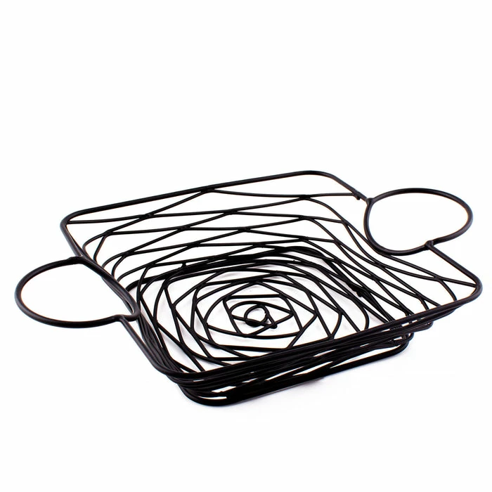 Serve delicious appetizers in style with this square wire basket. These Artesian collection baskets are best for serving all types of appetizers and entrees. They are made of black powder coated metal and come with two integrated 2 ounce ramekin holders. This product is hand wash only to preserve the life span of the coating. Ramekins are not included.